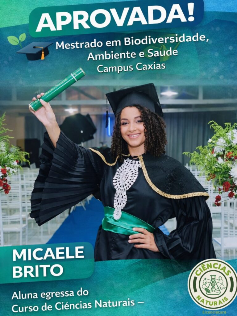 Micaele Brito da Costa também celebrou a aprovação no PPGBAS, ressaltando o apoio recebido durante a graduação. “É uma conquista maravilhosa, resultado de muito esforço, dedicação e aprendizado, além do apoio de pessoas fundamentais nessa caminhada. Minha graduação foi marcada por experiências enriquecedoras e conquistas importantes”, destacou, agradecendo ao Curso de Ciências Naturais Licenciatura e ao Laboratório de Estudos de Lepidóptera (LEL).