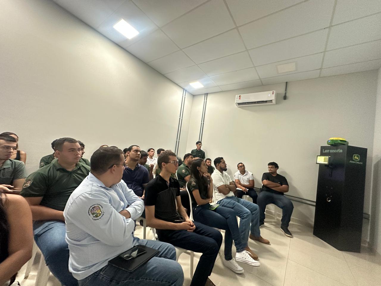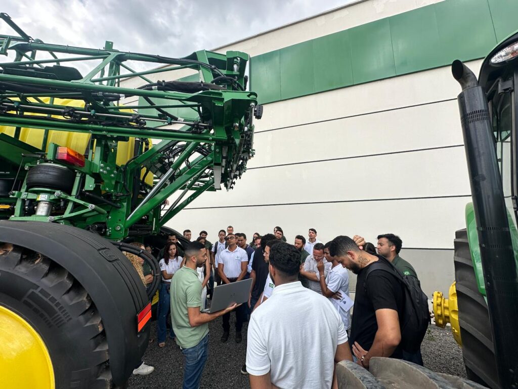 Os estudantes foram recebidos pelo funcionário Eduardo Arouche e pela equipe responsável pelo treinamento técnico em tecnologias, que apresentaram as plataformas digitais da John Deere e demonstraram, de forma prática, como essas ferramentas são aplicadas no dia a dia das propriedades rurais e das operações mecanizadas.