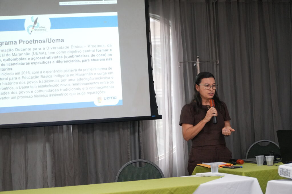A coordenadora mencionou ainda os intercâmbios de estudantes do Proetnos para a Áustria e Angola, a participação da equipe técnica e dos discentes na COP30, o lançamento de livros elaborados por estudantes da Licenciatura em Educação Quilombola (LIEQ) e o recebimento do Prêmio BRB de Impacto Social, na categoria Inclusão e Diversidade.