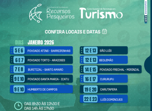 Araioses, Barreirinhas, Bequimão, Carutapera, Cururupu, Icatu, Humberto de Campos, Luís Domingues, Mirinzal, Santo Amaro e São Luís, das 8h30 às 12h30 e das 14h às 17h30, conforme o cronograma disponível no edital.
