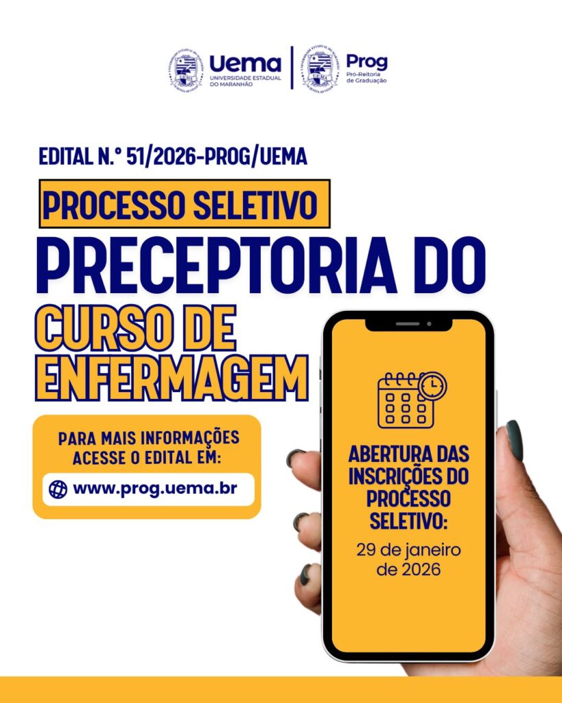 Confira o edital completo: https://www.prog.uema.br/wp-content/uploads/2026/01/EDITAL-N.o-51-2026-PROGUEMA.pdf