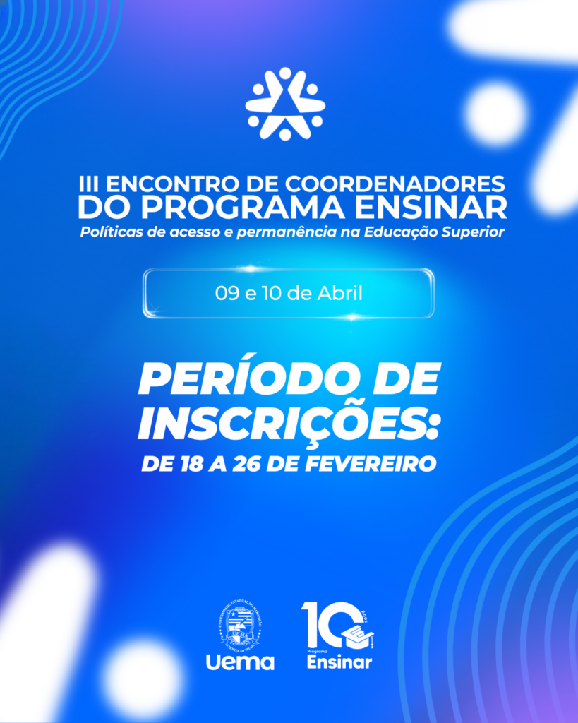 O Programa Ensinar de Formação de Professores da Universidade Estadual do Maranhão realizará, nos dias 9 e 10 de abril, o III Encontro de Coordenadores do Programa Ensinar (ECOEN). Nesta edição, o evento terá como tema “Políticas de acesso e permanência na educação superior”, reforçando o compromisso institucional com a qualificação da formação docente no estado.