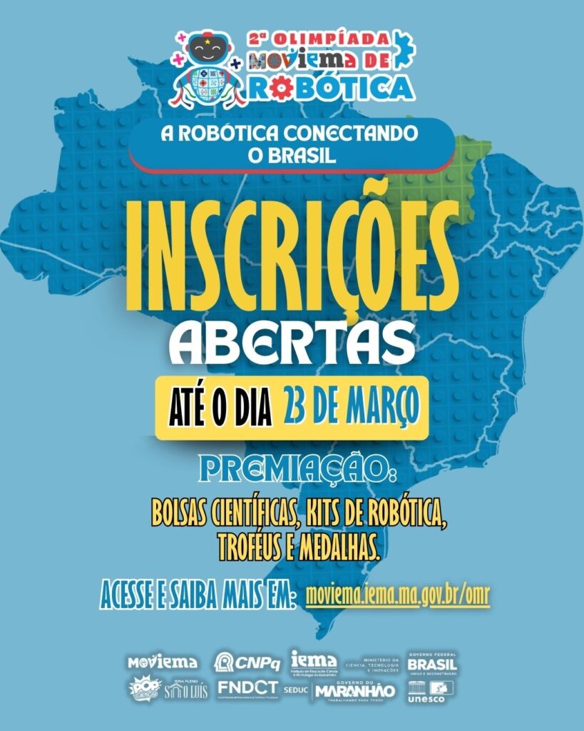 A Universidade Estadual do Maranhão (Uema), manifesta apoio à 2ª edição da Olimpíada Moviema de Robótica (OMR), promovida pelo Instituto Estadual de Educação, Ciência e Tecnologia do Maranhão (IEMA). O evento busca estimular o interesse de estudantes pela ciência, tecnologia e pensamento computacional.