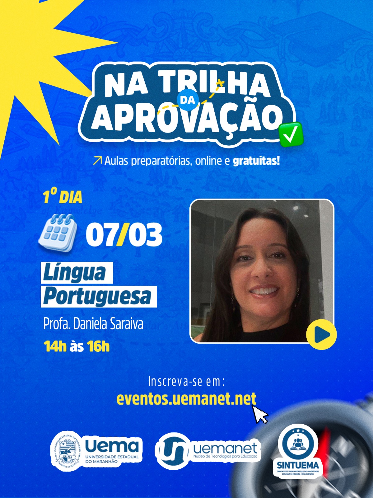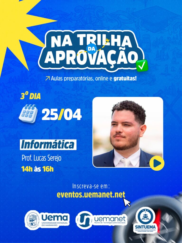 A Universidade Estadual do Maranhão (Uema), por meio do Núcleo de Tecnologias para Educação (Uemanet), promoverá a partir deste sábado (7), o cursinho preparatório ‘Na trilha da aprovação’.